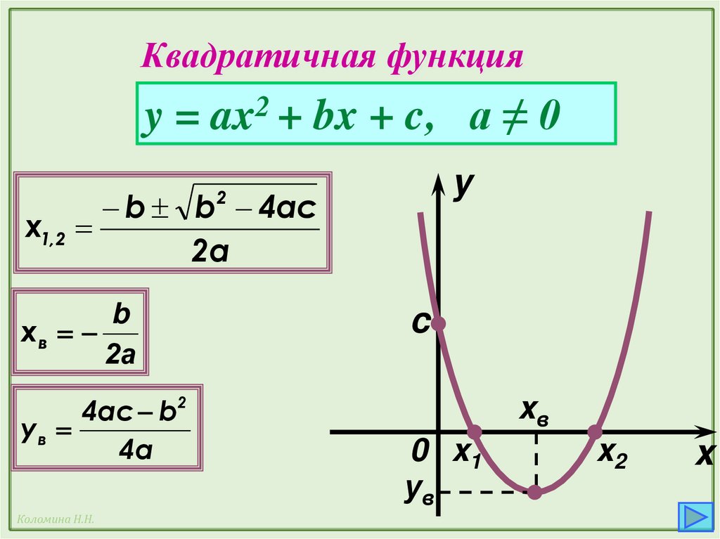 Квадратичная функцияy = ax2 + bx + c, а ≠ 0