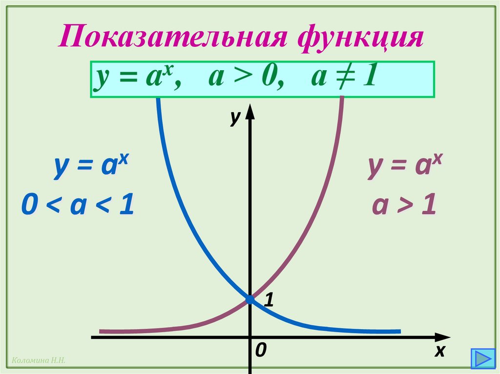 Показательная функцияy = ax, а > 0, a ≠ 1