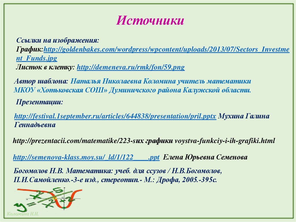 Автор шаблона: Наталья Николаевна Коломина учитель математики