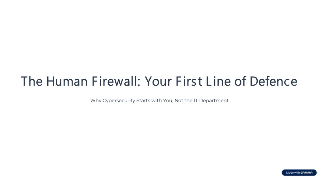 The Human F irewall: Your F irs t L ine of DefenceWhy Cybersecurity Starts with You, Not the IT Department