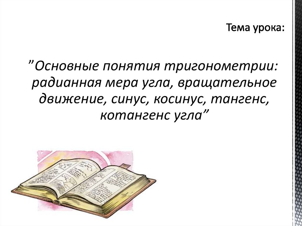 ”Основные понятия тригонометрии:радианная мера угла, вращательное