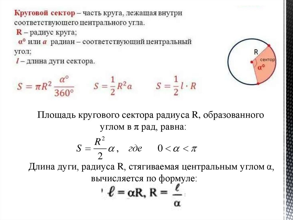 Длина дуги, радиуса R, стягиваемая центральным углом α,