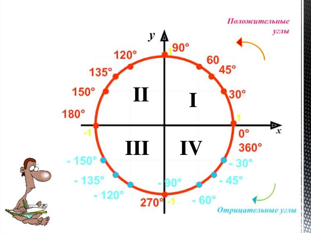 четверти, если 270° < α < 360°, то α – угол IV четверти.