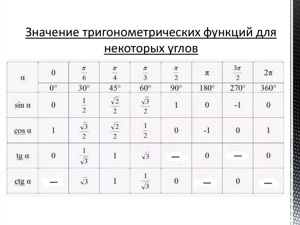 существует. Аналогично для котангенса: если sin α = 0, то котангенс этого