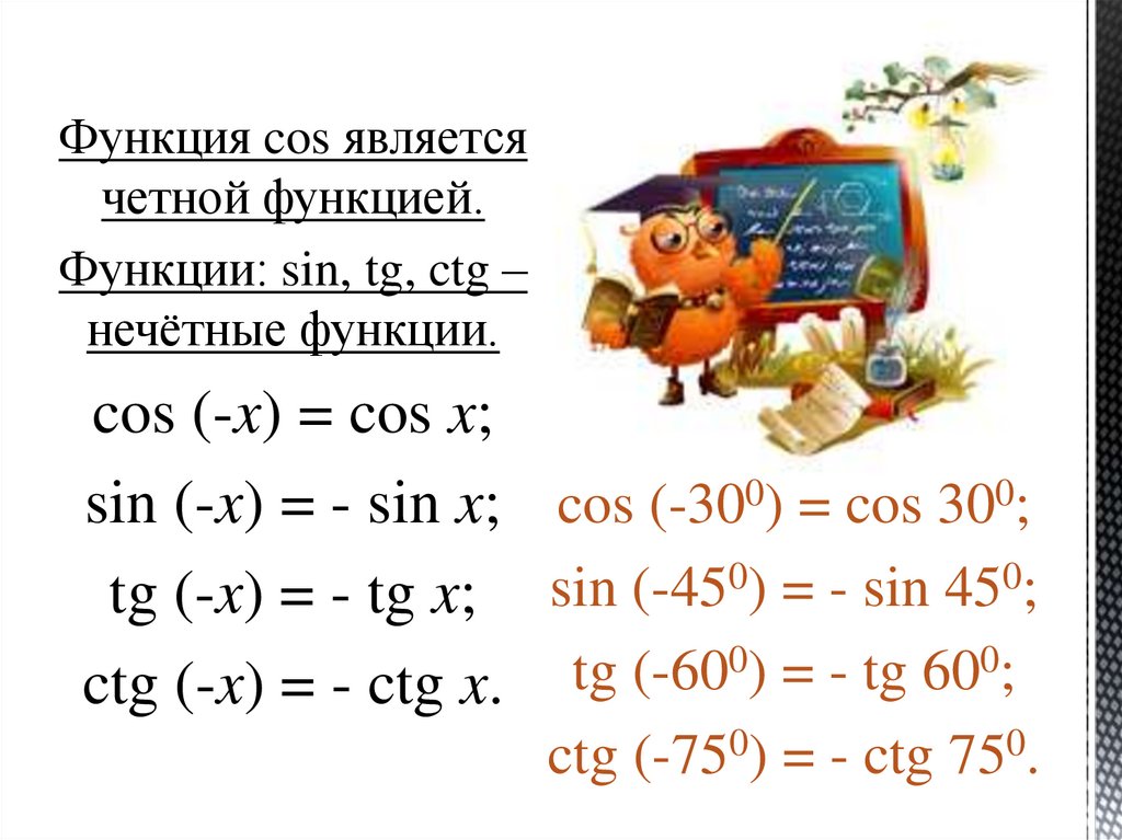 sin (-x) = - sin x; cos (-300) = cos 300;