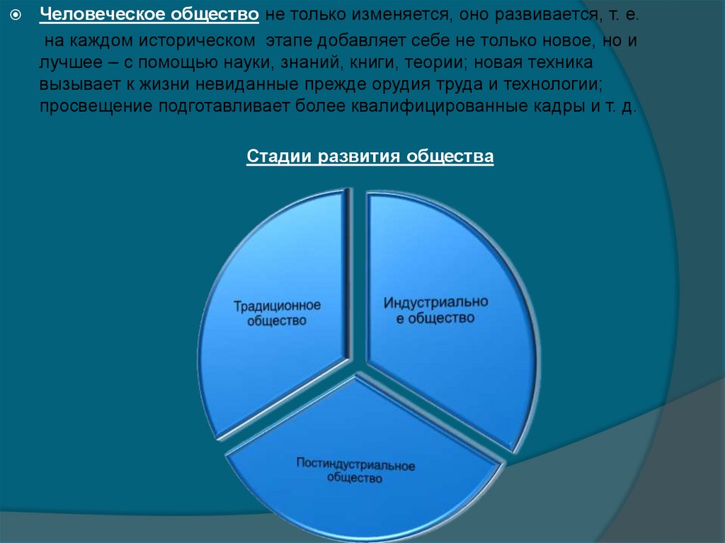 Человеческое общество не только изменяется, оно развивается, т. е.на каждом историческом этапе добавляет себе не только новое, но и