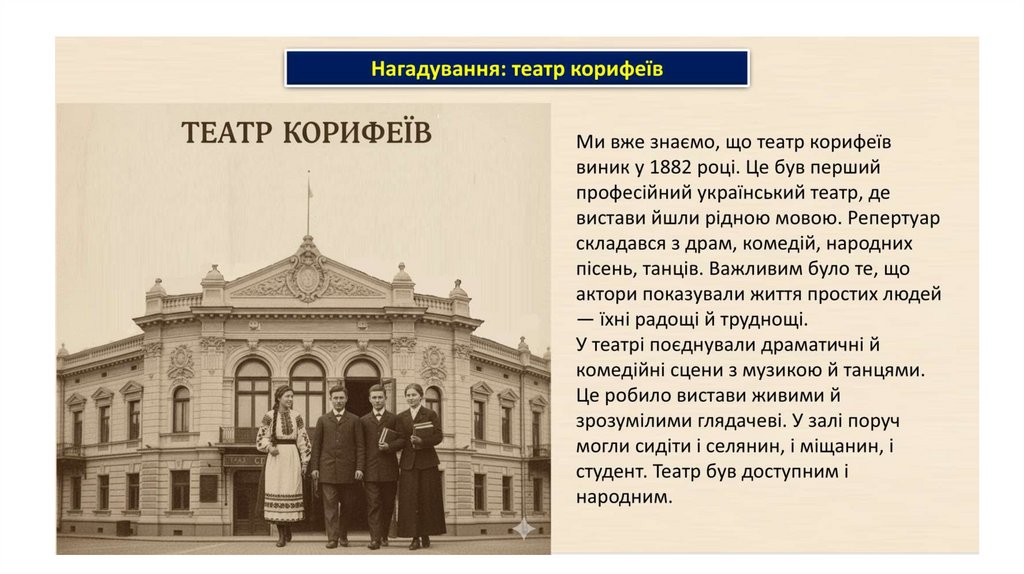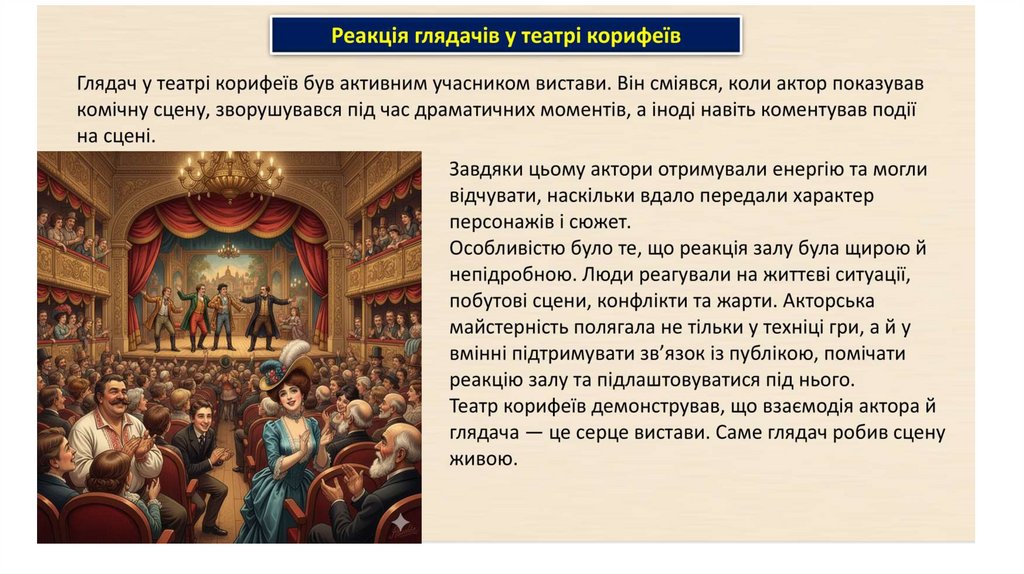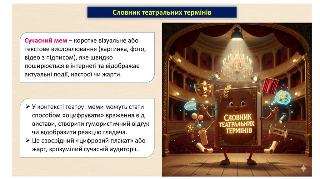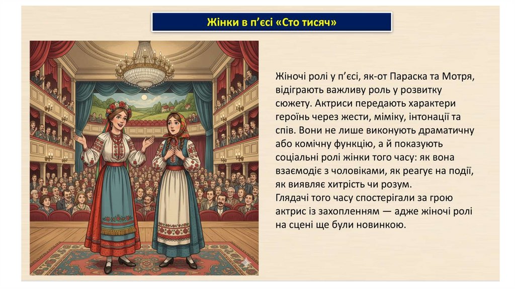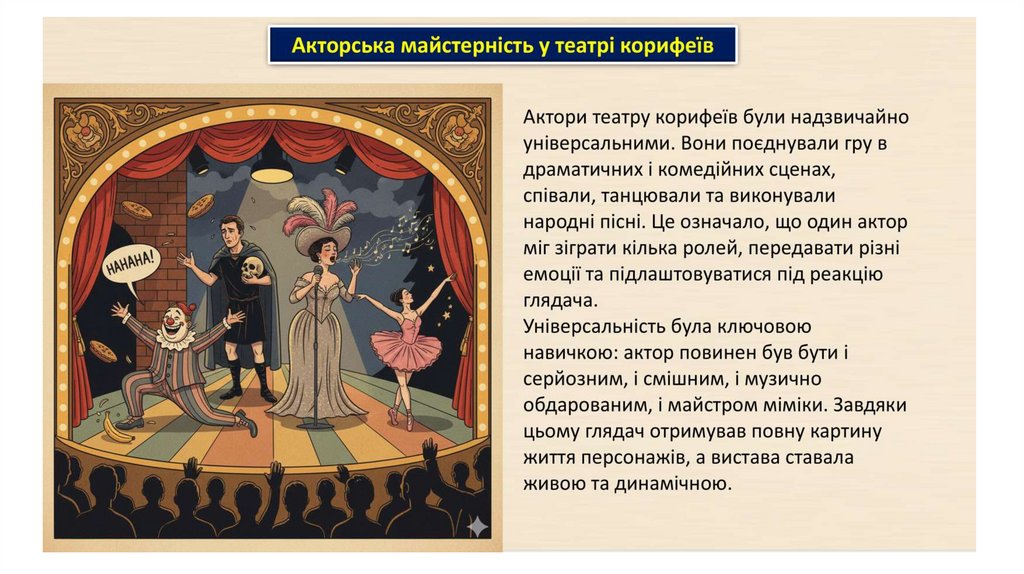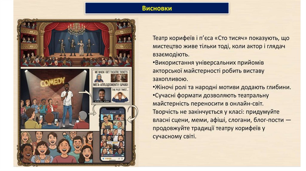 Особливості акторської майстерності: універсальність. Жінка на сцені театру. Зв’язок з сучасним жанром стендап.