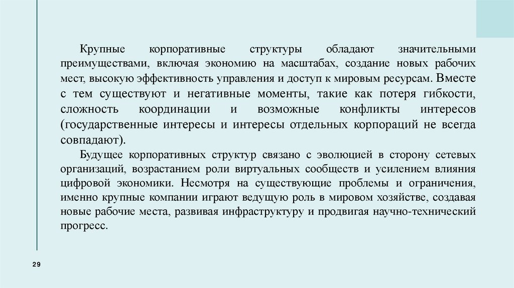 именно крупные компании играют ведущую роль в мировом хозяйстве, создавая
