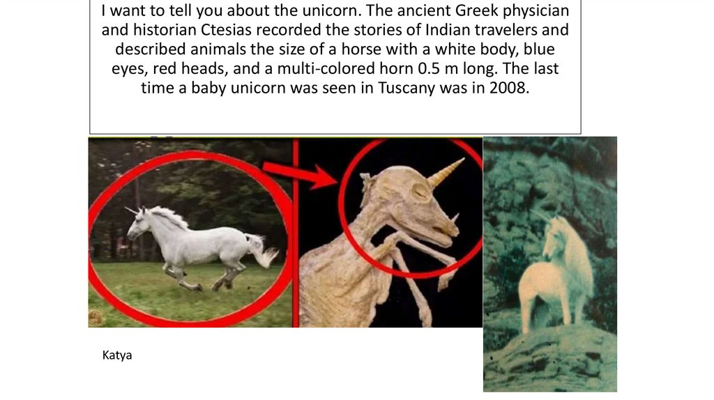 I want to tell you about the unicorn. The ancient Greek physicianand historian Ctesias recorded the stories of Indian travelers and