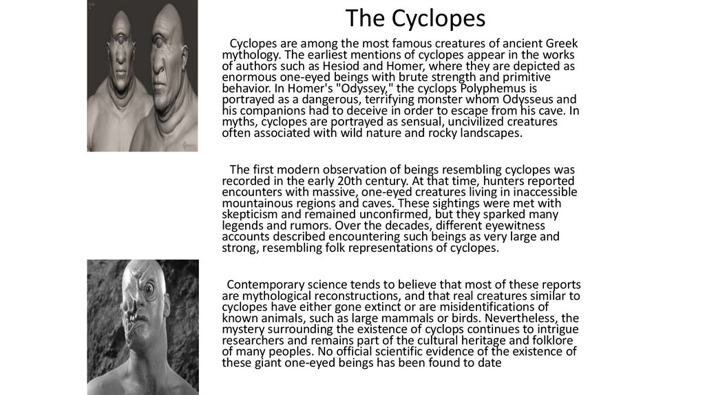 The CyclopesCyclopes are among the most famous creatures of ancient Greek