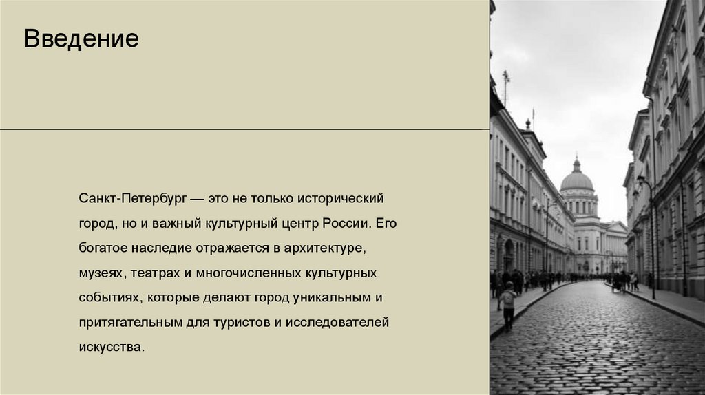 ВведениеСанкт-Петербург — это не только исторический