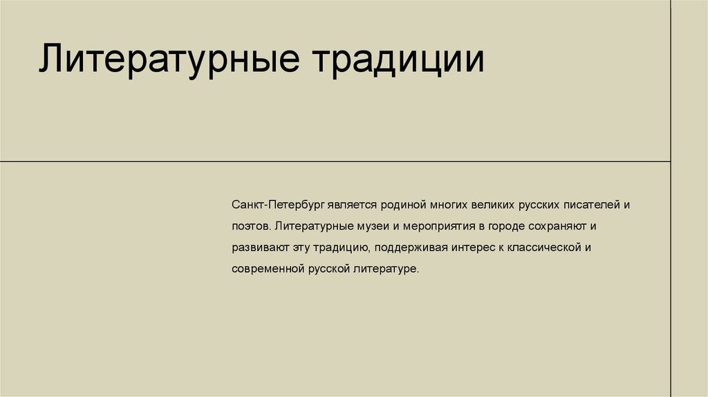 Литературные традицииСанкт-Петербург является родиной многих великих русских писателей и