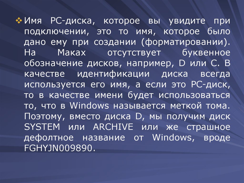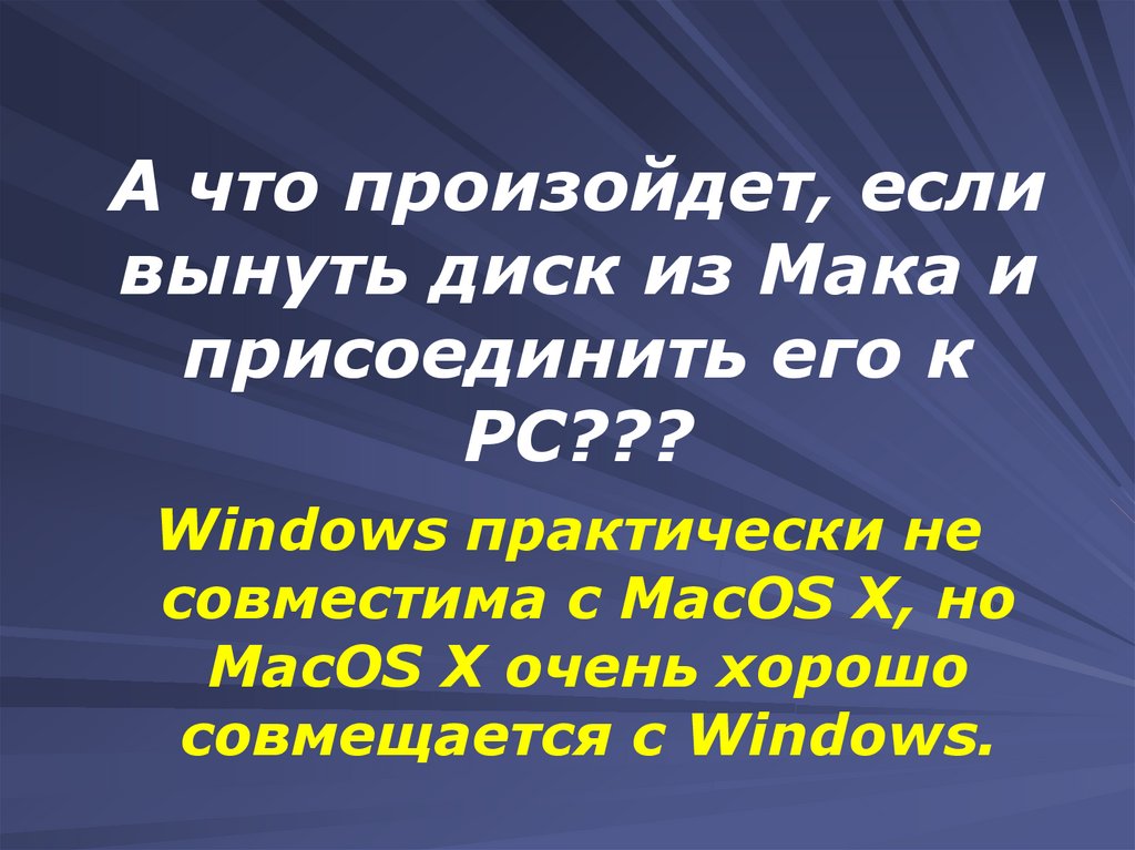49. А что произойдет, если вынуть диск из Мака и присоединить его к РС???