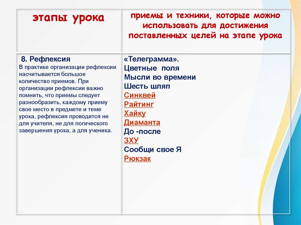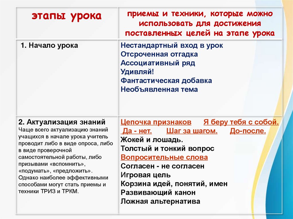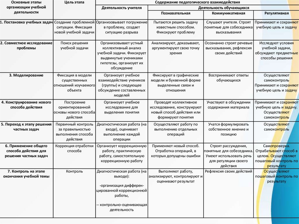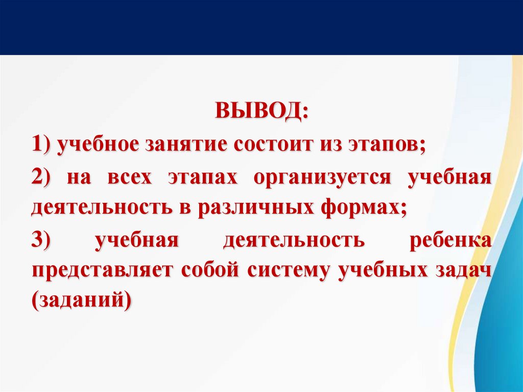ВЫВОД:1) учебное занятие состоит из этапов;