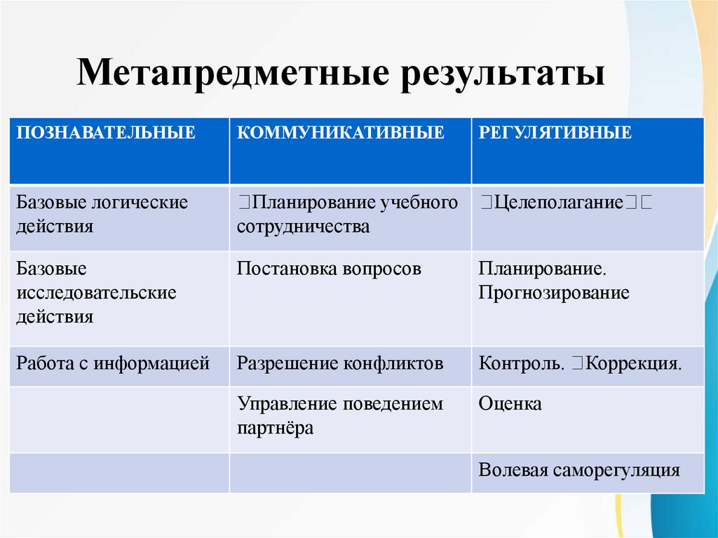 Метапредметные результатыПОЗНАВАТЕЛЬНЫЕ