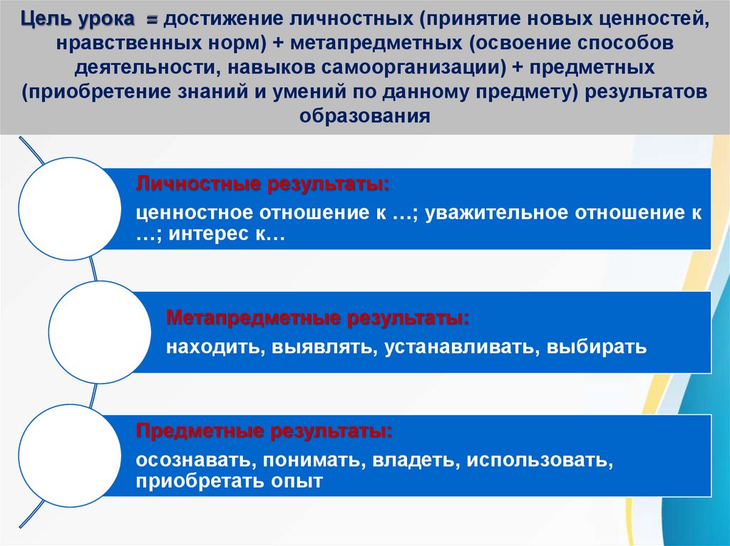 Цель урока = достижение личностных (принятие новых ценностей,нравственных норм) + метапредметных (освоение способов