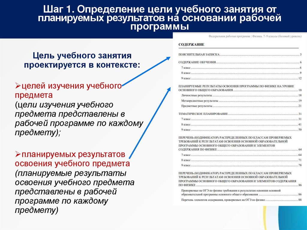 Шаг 1. Определение цели учебного занятия отпланируемых результатов на основании рабочей
