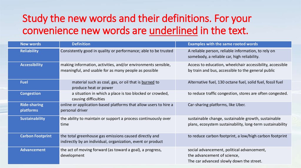 2. Study the new words and their definitions. For your convenience new words are underlined in the text.
