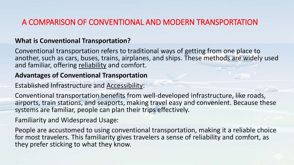 A COMPARISON OF CONVENTIONAL AND MODERN TRANSPORTATIONWhat is Conventional Transportation?