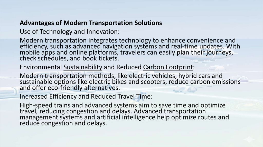 Advantages of Modern Transportation SolutionsUse of Technology and Innovation: