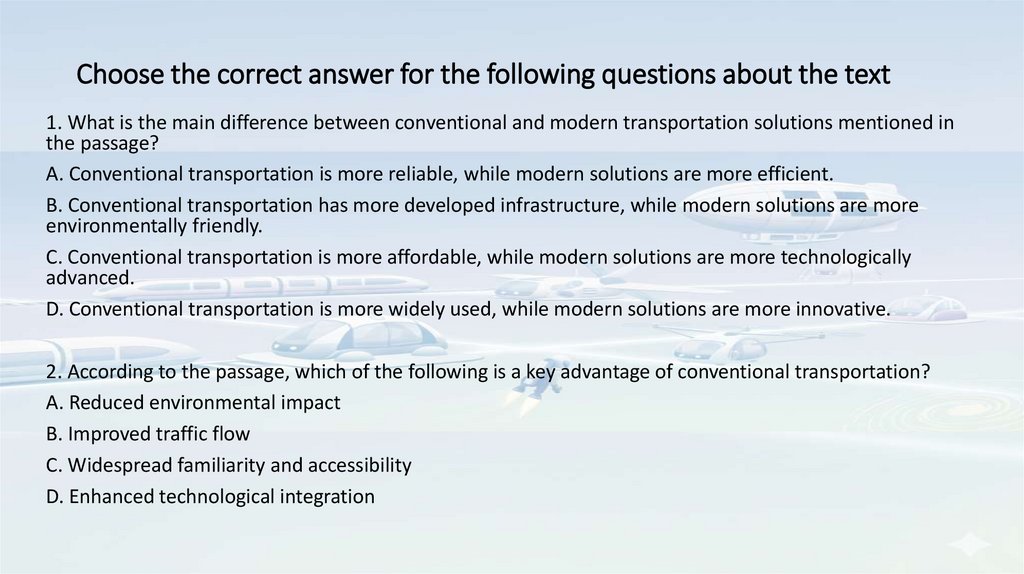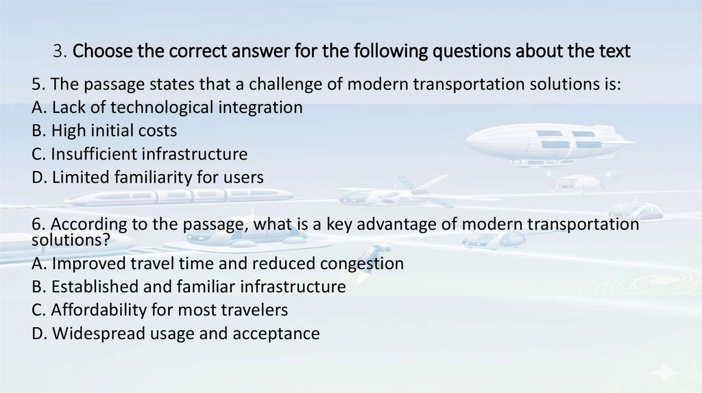 5. The passage states that a challenge of modern transportation solutions is:A. Lack of technological integration