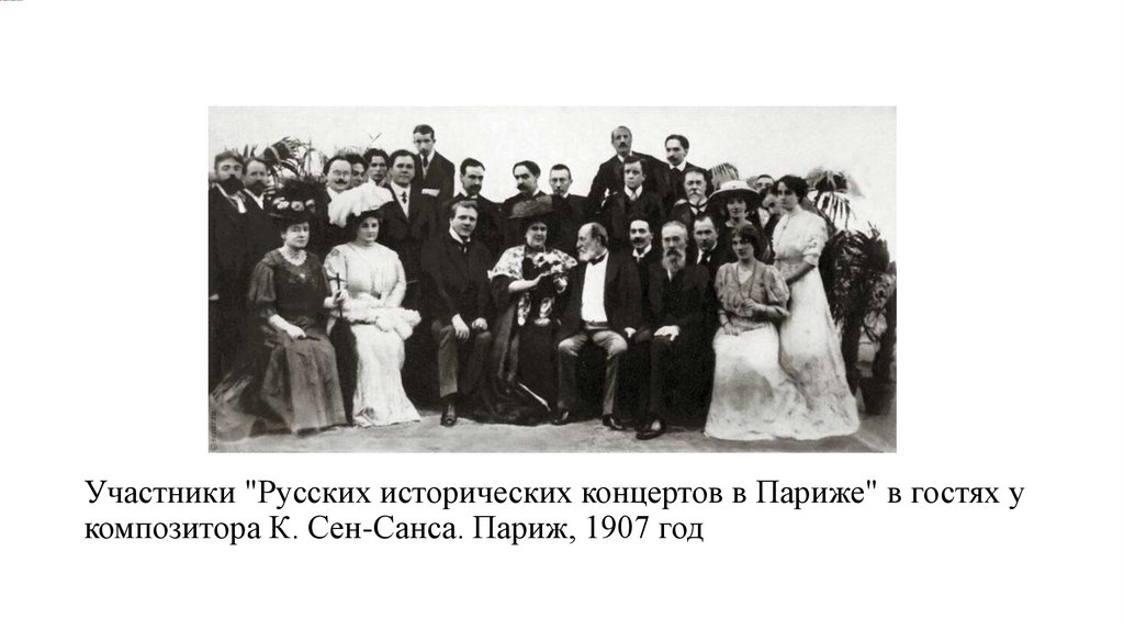 Участники "Русских исторических концертов в Париже" в гостях укомпозитора К. Сен-Санса. Париж, 1907 год