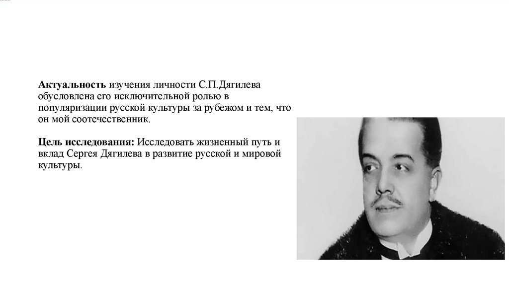 Актуальность изучения личности С.П.Дягилеваобусловлена его исключительной ролью в