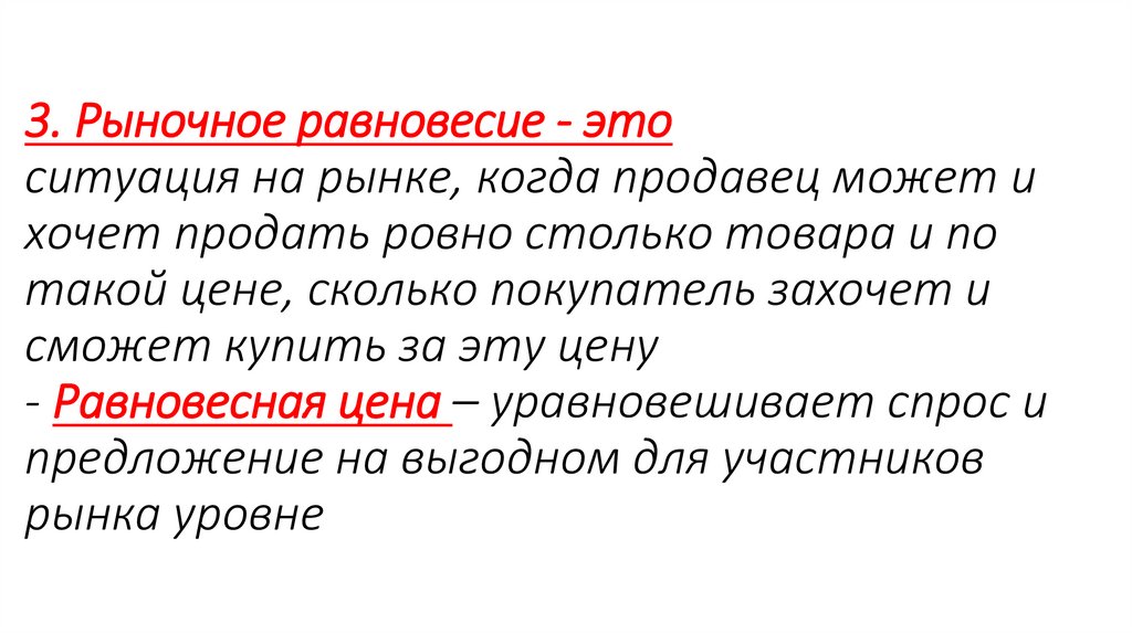 17. 3. Рыночное равновесие - это ситуация на рынке, когда продавец может и хочет продать ровно столько товара и по такой цене,
