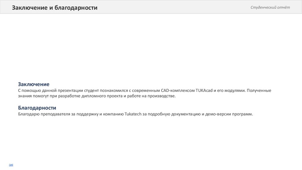 С помощью данной презентации студент познакомился с современным CAD‑комплексом TUKAcad и его модулями. Полученные