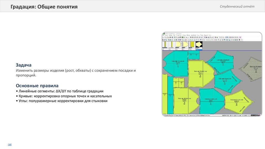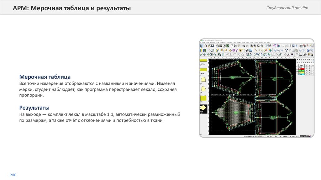 мерки, студент наблюдает, как программа перестраивает лекало, сохраняя