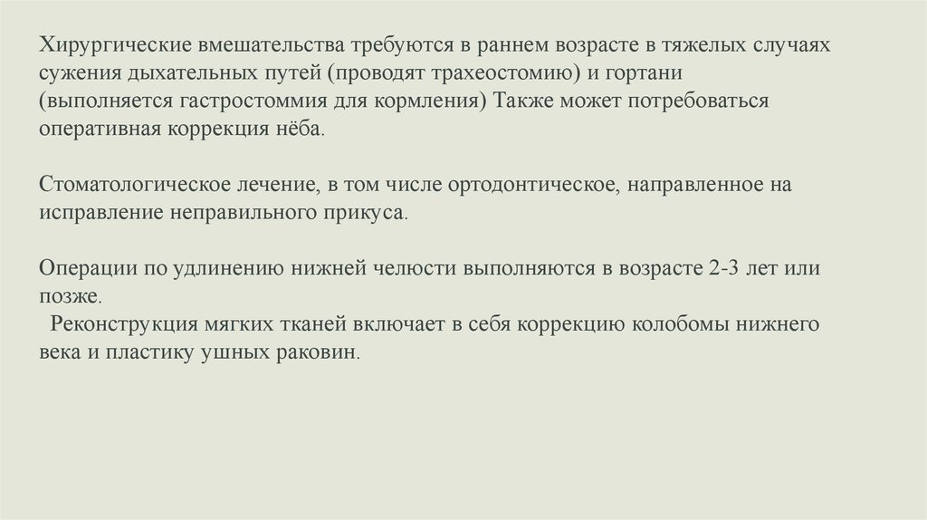 симптоматическое комплексное лечение. Синдром Гольденхара без многоэтапного