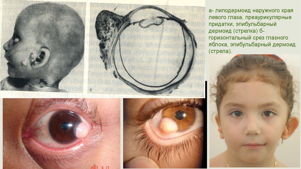 а- липодермоид наружного краялевого глаза, преаурикулярные