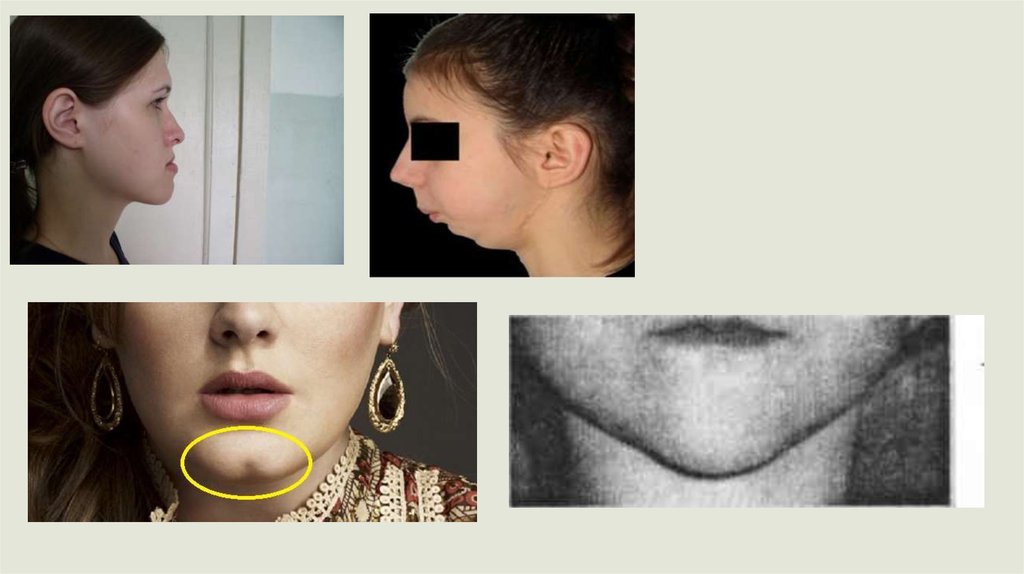 искривленный нос. Асимметрия лица.Прогения, микрогения, раздвоенный подбородок,