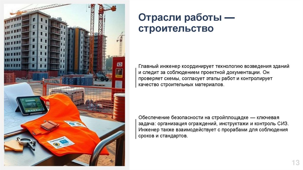 Главный инженер координирует технологию возведения зданий