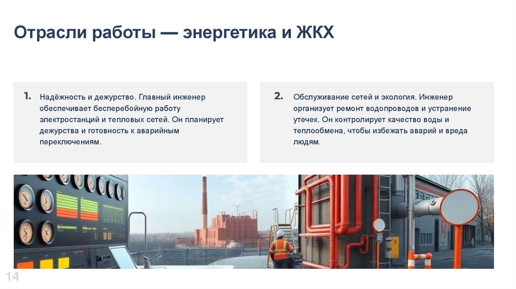 Отрасли работы — энергетика и ЖКХНадёжность и дежурство. Главный инженер