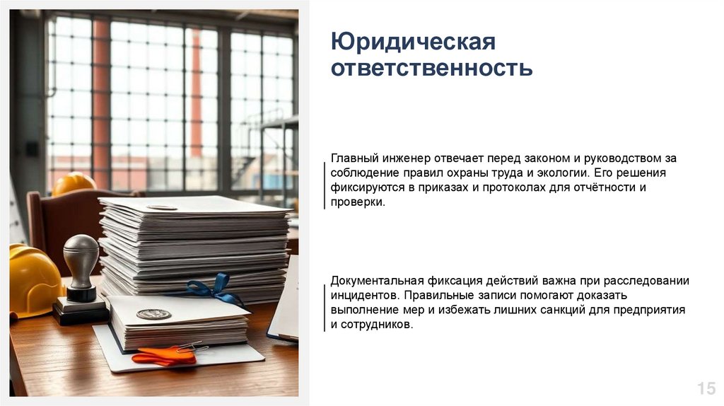 Главный инженер отвечает перед законом и руководством за