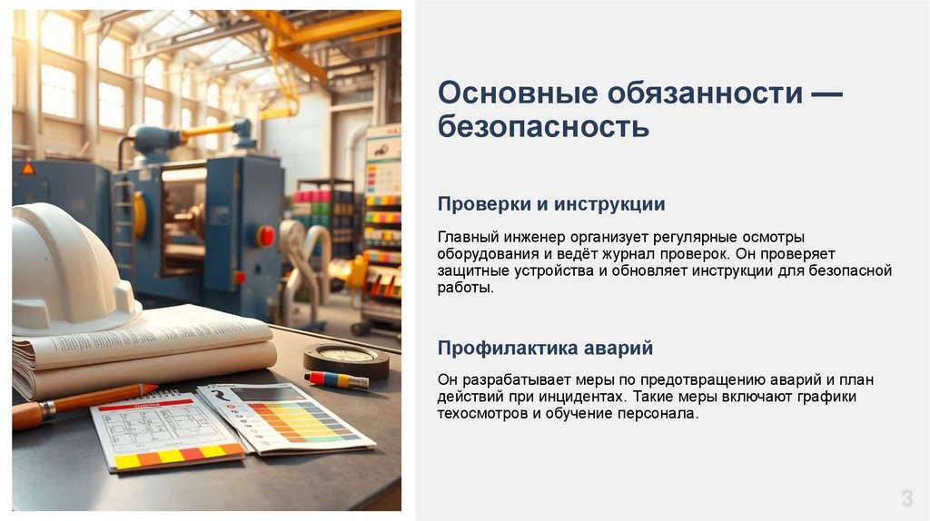 Главный инженер следит, чтобы машины и люди работали