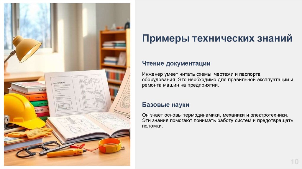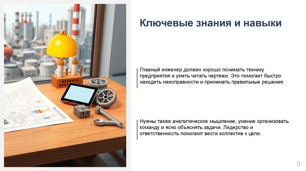 Ключевые знания и навыкиГлавный инженер должен хорошо понимать технику