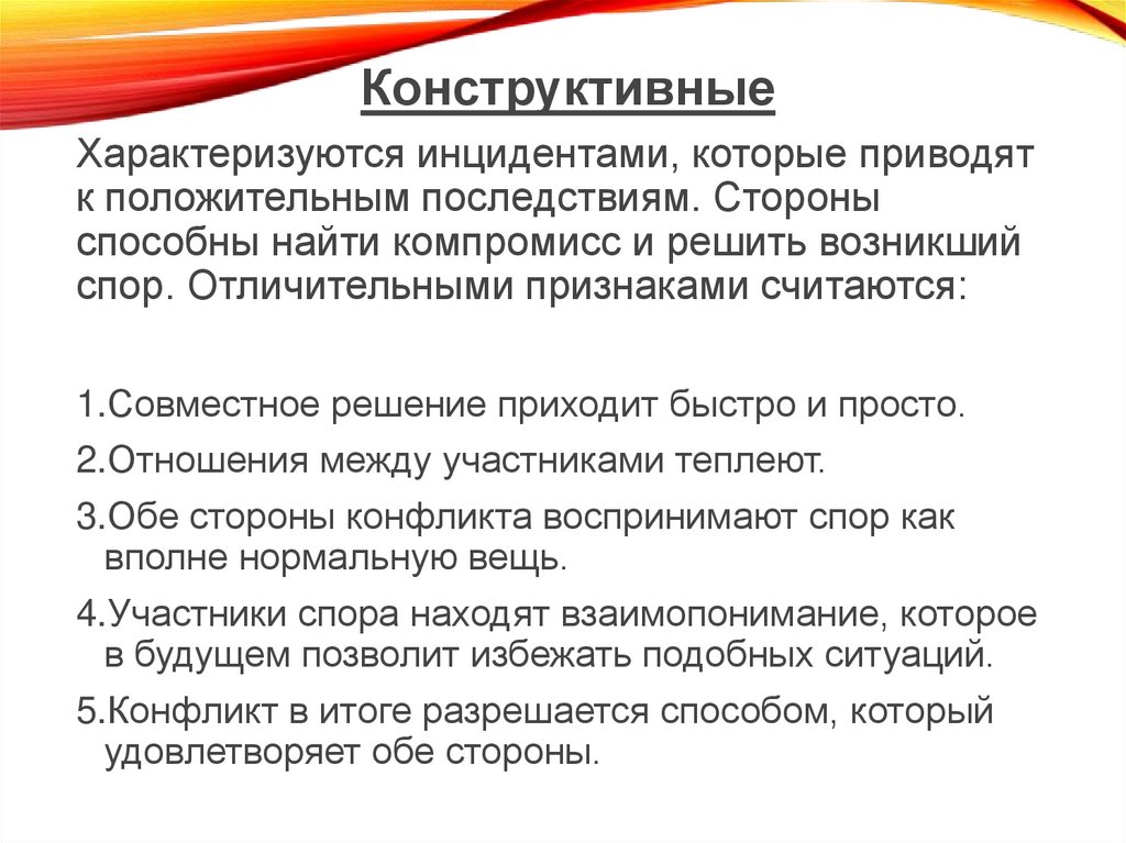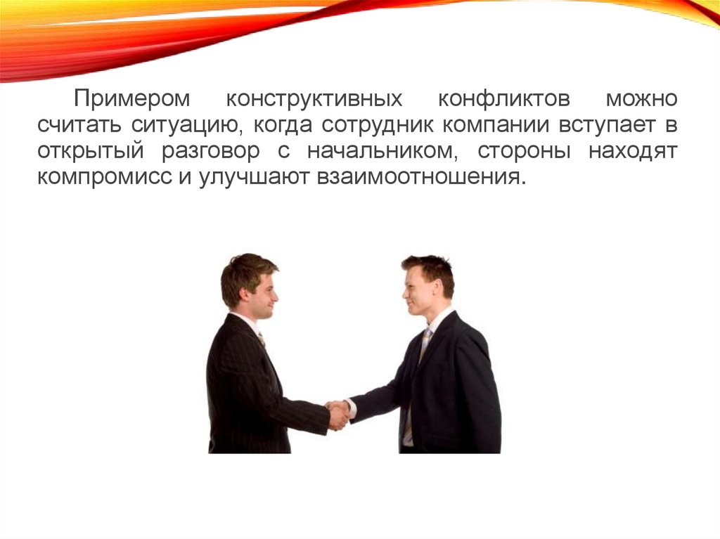 Примером конструктивных конфликтов можносчитать ситуацию, когда сотрудник компании вступает в