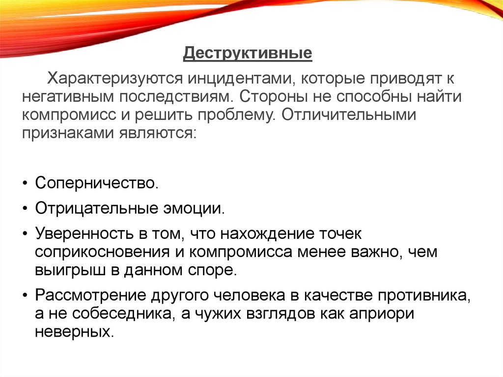 ДеструктивныеХарактеризуются инцидентами, которые приводят к