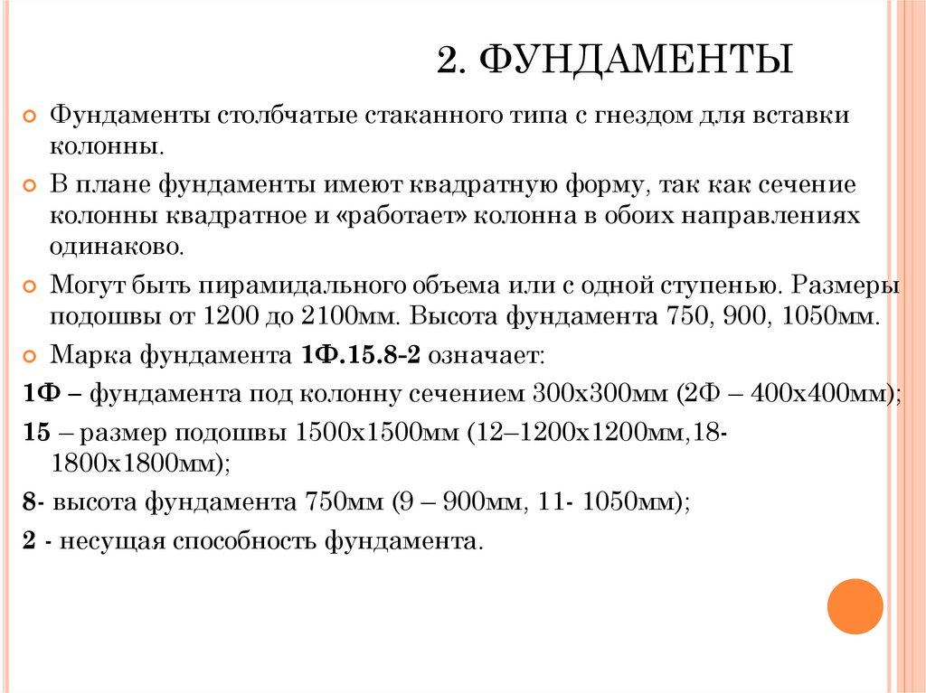 2. ФУНДАМЕНТЫФундаменты столбчатые стаканного типа с гнездом для вставки