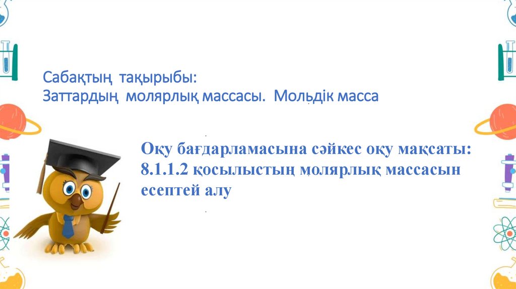 Оқу бағдарламасына сәйкес оқу мақсаты:8.1.1.2 қосылыстың молярлық массасын