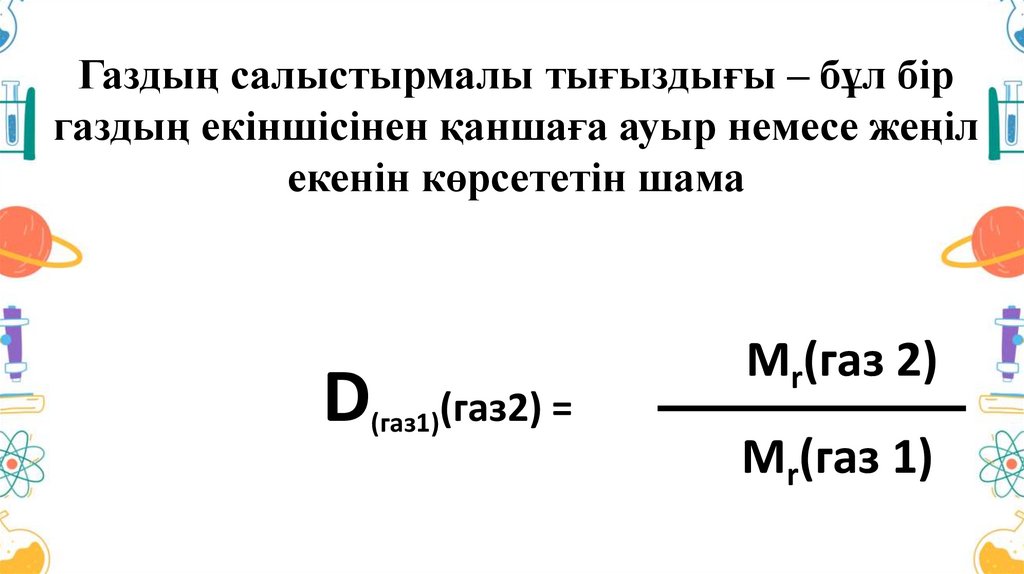 Газдың салыстырмалы тығыздығы – бұл біргаздың екіншісінен қаншаға ауыр немесе жеңіл