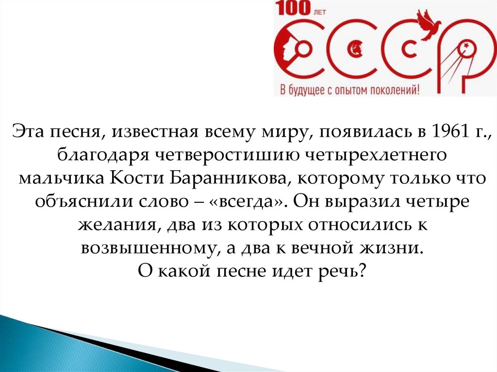 Эта песня, известная всему миру, появилась в 1961 г.,благодаря четверостишию четырехлетнего