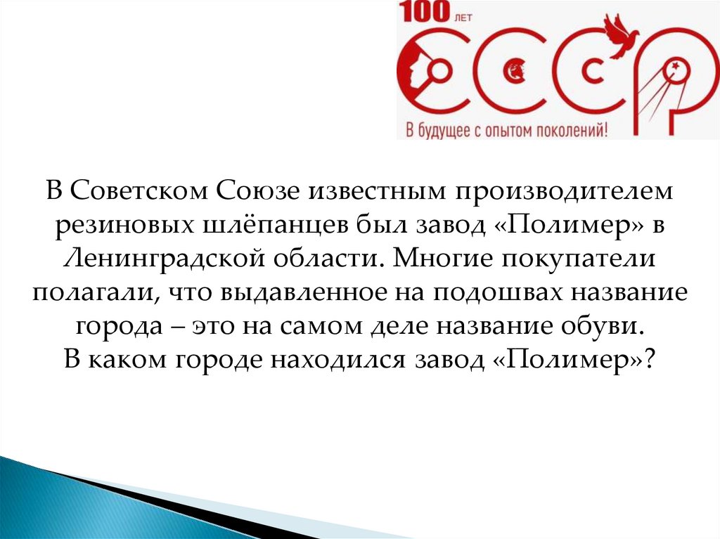 В Советском Союзе известным производителемрезиновых шлёпанцев был завод «Полимер» в