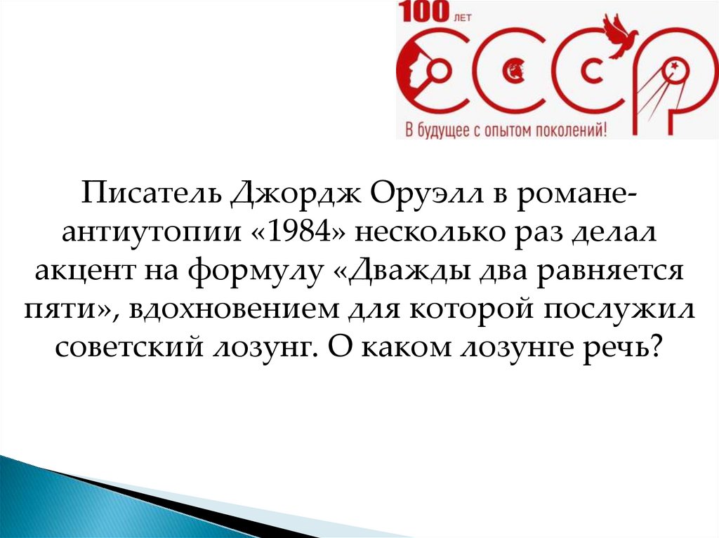 Писатель Джордж Оруэлл в романеантиутопии «1984» несколько раз делалакцент на формулу «Дважды два равняется