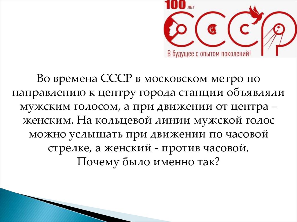 Во времена СССР в московском метро понаправлению к центру города станции объявляли