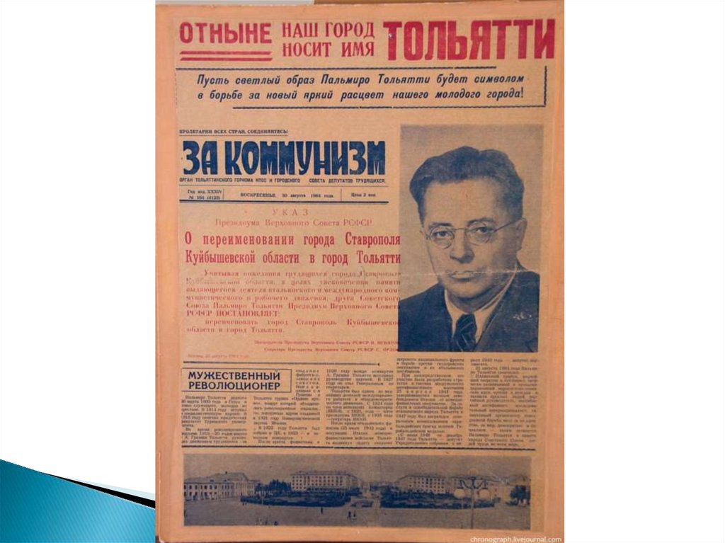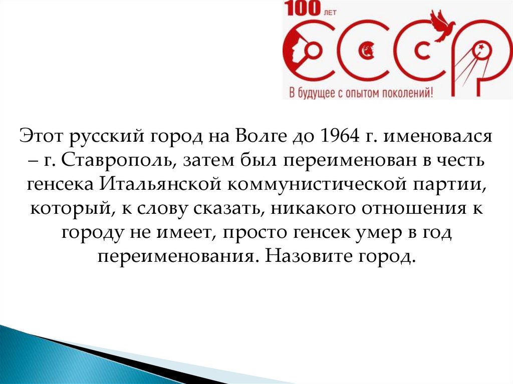 Этот русский город на Волге до 1964 г. именовался– г. Ставрополь, затем был переименован в честь