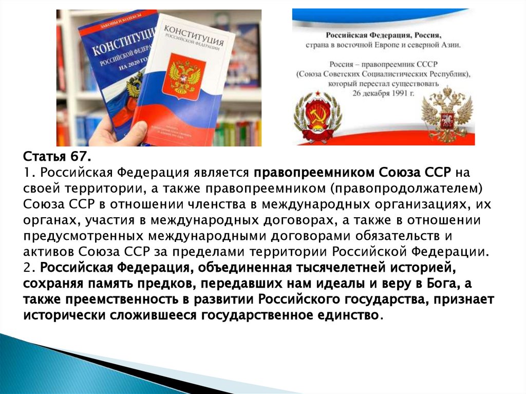Статья 67.1. Российская Федерация является правопреемником Союза ССР на