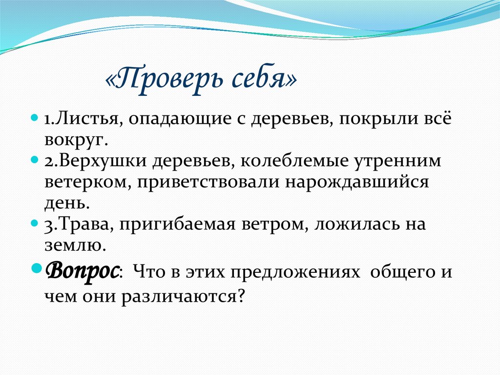 «Проверь себя»1.Листья, опадающие с деревьев, покрыли всё